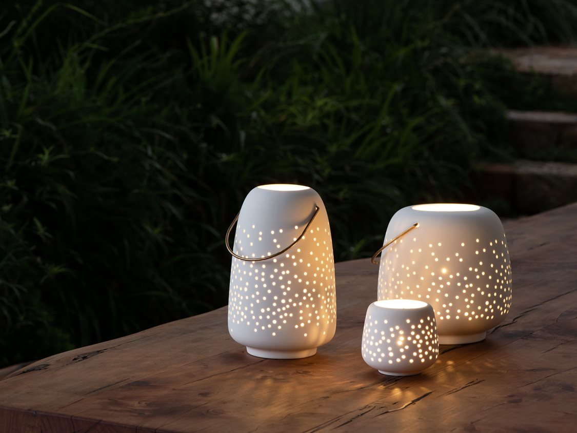 Crafted from matte ceramic and delicately perforated, each Ceramic Lantern showcases the Signature Flicker™ of Uyuni Lighting LED Candles, casting soft starlit patterns that brings a calm, refined atmosphere to everyday living and relaxed gatherings at home.