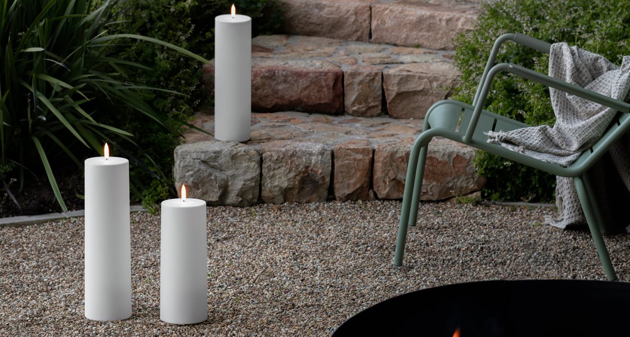 Discover our reengineered Outdoor Pillar Candles, meticulously crafted to elevate and extend your outdoor experience. Crafted with durability in mind, these pillars now have enhanced battery performance.